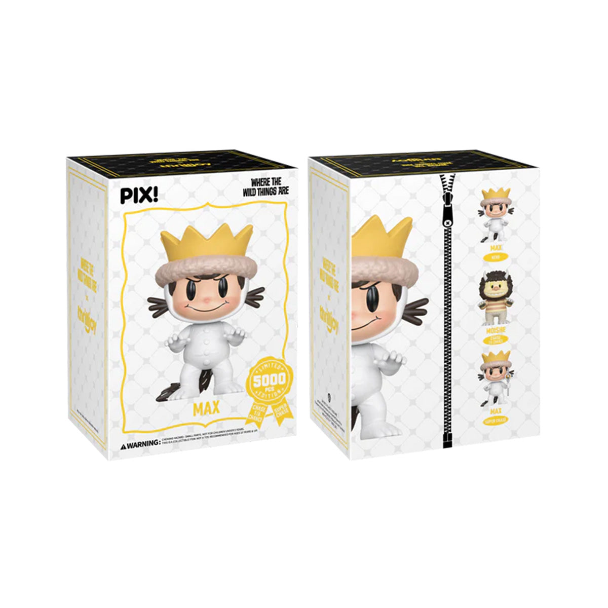 Bring home Max in his legendary wolf form with this limited edition Thrilljoy PIX collectible. Dressed in his iconic white costume complete with fluffy tail and golden crown, this figure captures the mischievous spirit of adventure. With 1-of-6 odds, you have a chance to pull the ultra-rare 48-piece chase variant featuring Max wielding his signature scepter. Each collectible arrives authenticated with a laser-printed, spot-varnished certificate card, designed to integrate seamlessly into any serious collection. Limited to 5,000 units worldwide—secure yours today before these wild treasures disappear.