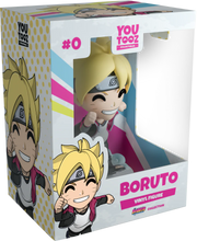 Boruto explodes into Youtooz to pull pranks with their amazing debut! Standing at 4.7 inches tall and posed in a mid run with both arms raised high, he kicks up a cloud of smoke as he dashes away from his assailants! His long unruly blonde hair spikes up at the back while its chunky fringe falls over a black Konoha headband to frame his grinning face with its faint whisker marks. Always ready for action, he’s dressed in an iconic black and maroon jacket that sits over a white shirt with black pants and sandals, while the pendant fastened around his neck flows in the wind. The exterior of his packaging is a simple pattern of yellow dots over a white background, this continues onto the protective sleeve which is stamped with the Boruto logo. While the interior of the packaging is lined blue, pink and yellow streaks over a mottled white. This collectible ships in a matte, embossed, protective outer sleeve and a custom sized plastic protector for maximum protection during shipping.