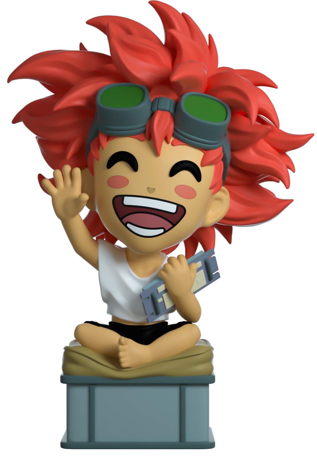 Edward is a prodigy in computer hacking who joins and assists the Bebop crew in their adventures. Always happy, and brilliantly smart, Edward is seated cross legged on a puffy cushion with her green goggles around the top of her forehead. In her hand is a computer keyboard, which we don't know if it's being used for good or bad adventures.